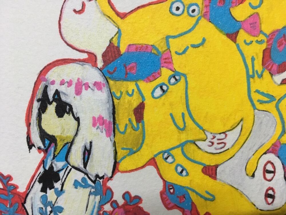 ドローイング「ねことおばけと」