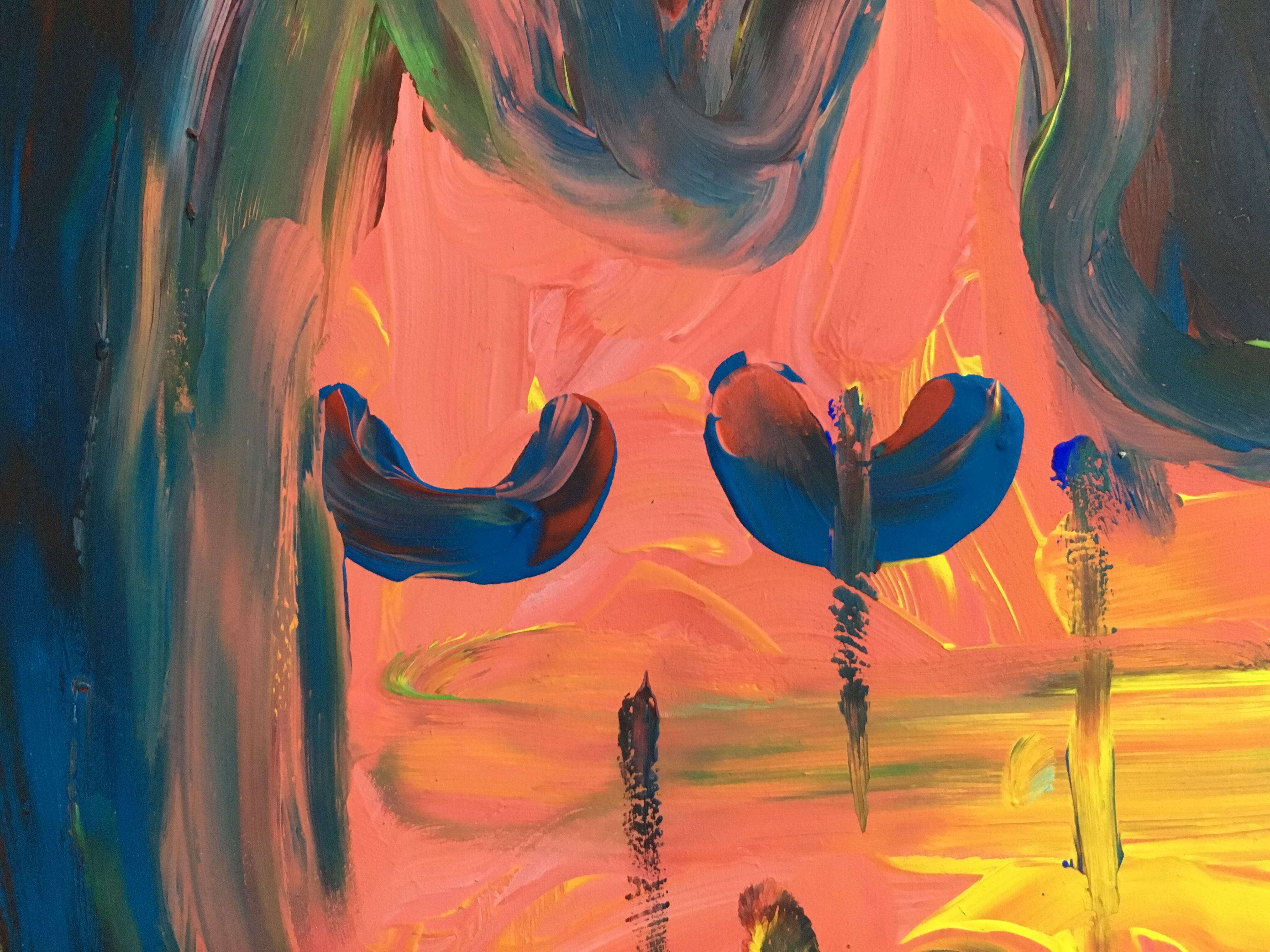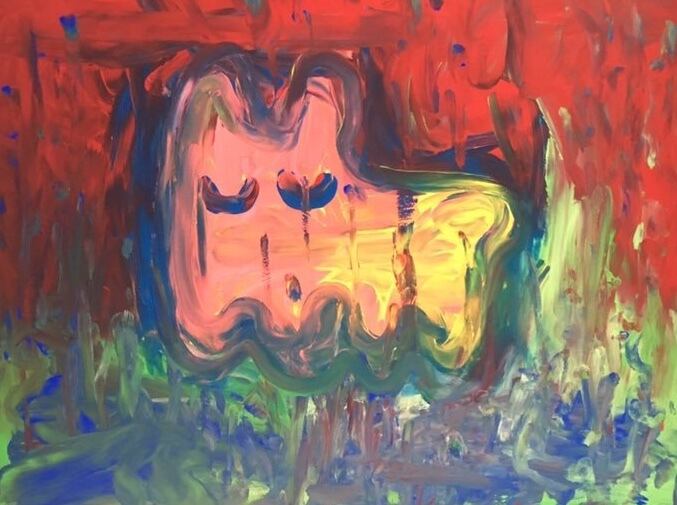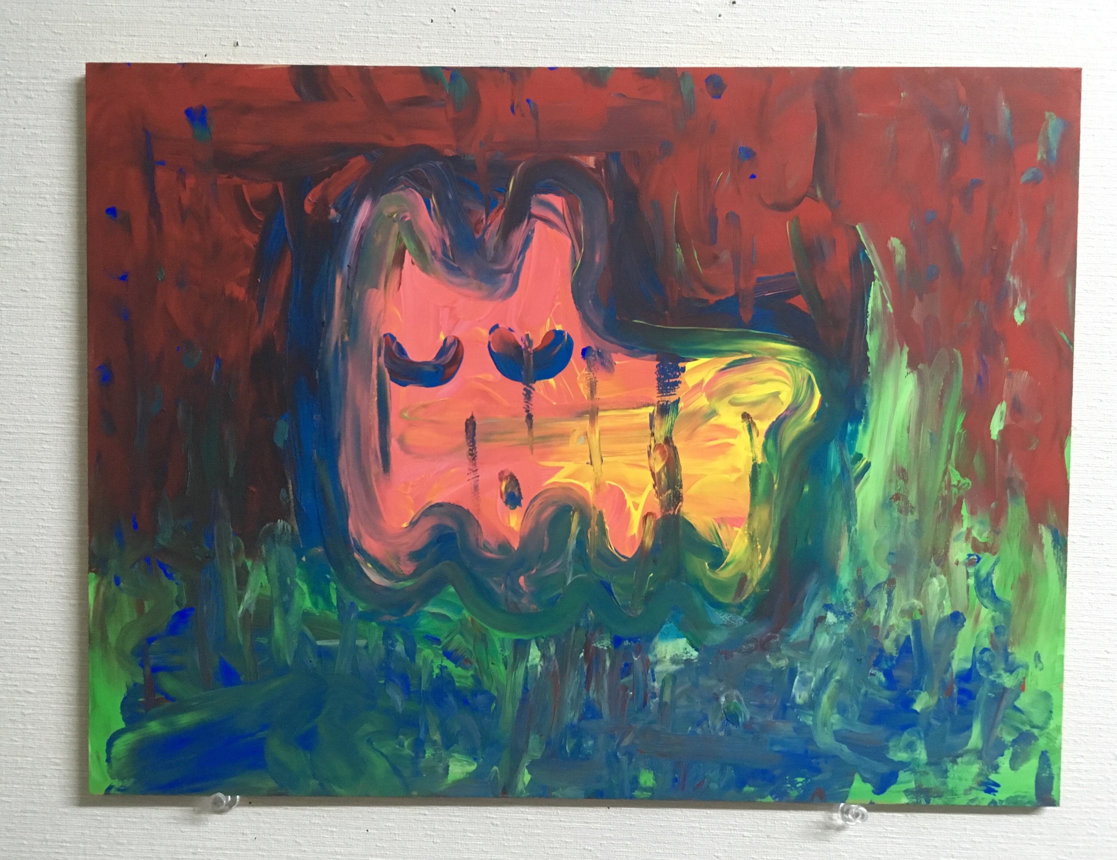 300×400mm厚さ6mmのMDF材にアクリル絵の具で描いています。